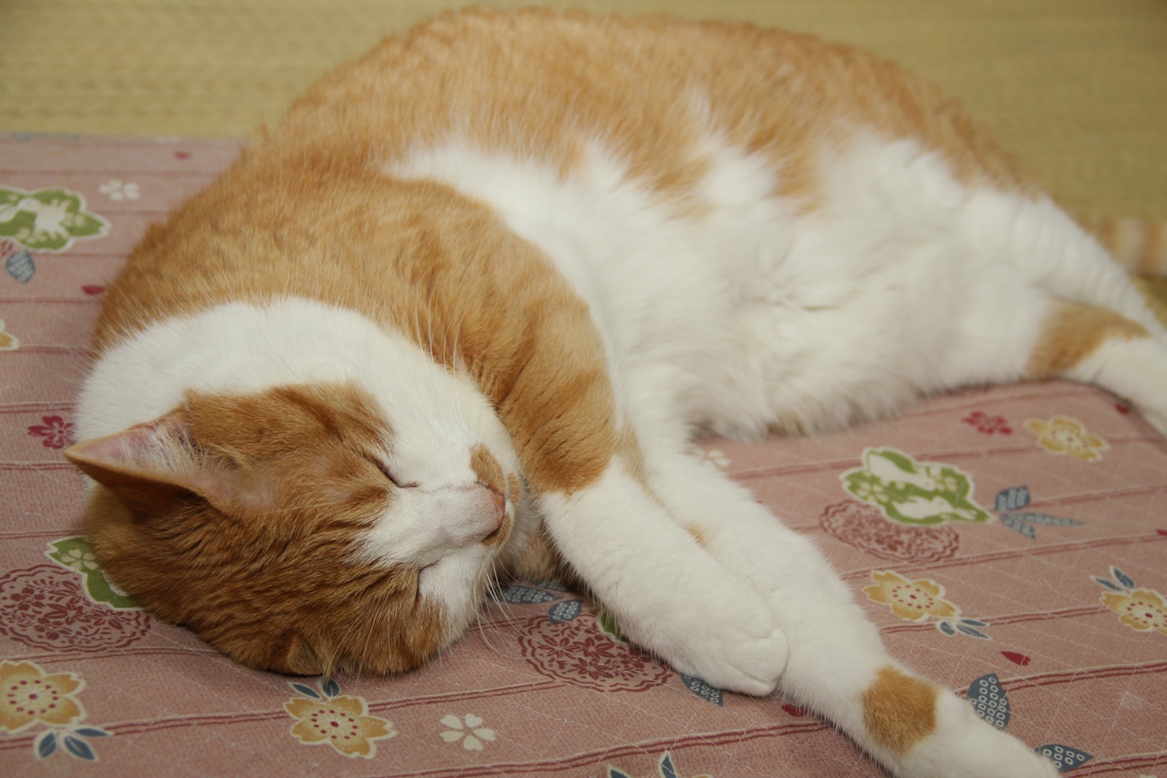 野良猫は、こんな風に転がって寝たりはあまりしないでしょうね。